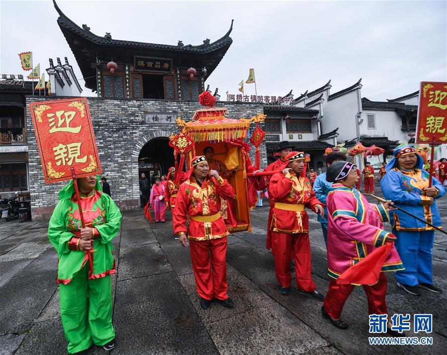 11月19日,河橋古鎮(zhèn)舉行傳統(tǒng)婚俗表演。 新華社記者 徐昱 攝