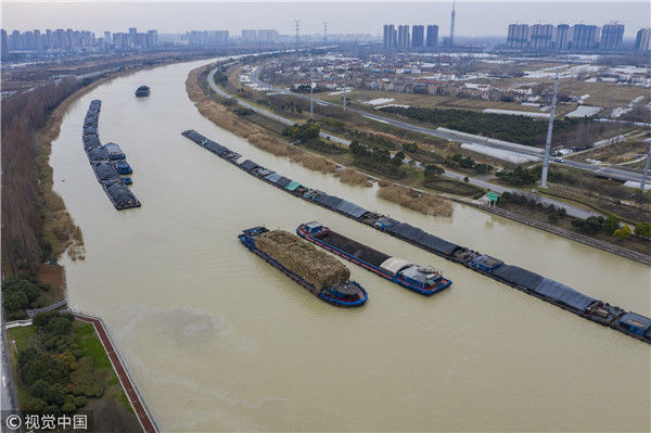 航拍京杭古運(yùn)河冬景