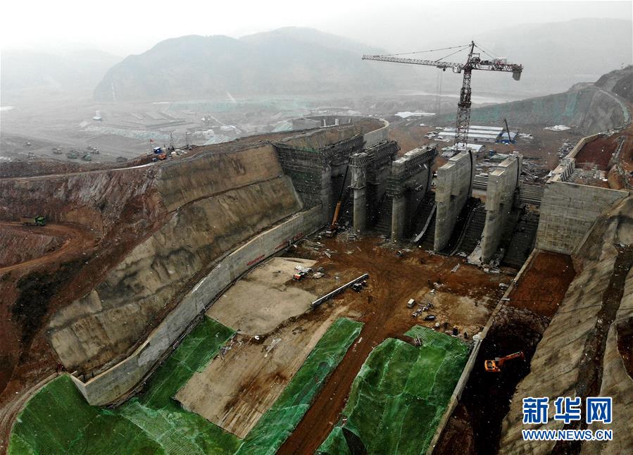 12月27日無人機(jī)拍攝的前坪水庫建設(shè)現(xiàn)場。目前,被國務(wù)院列為172項(xiàng)節(jié)水供水重大水利工程之一的前坪水庫主體工程建設(shè)進(jìn)度已超八成。該水庫位于河南省汝陽縣前坪村,是一座以防洪為主,兼具供水、灌溉、發(fā)電功能的大型水利樞紐工程。新華社記者 李安 攝