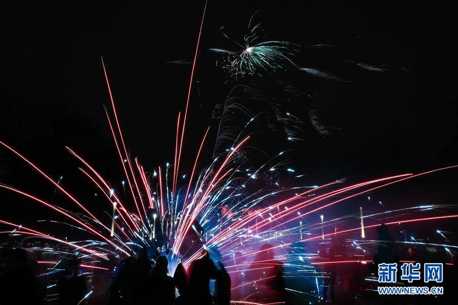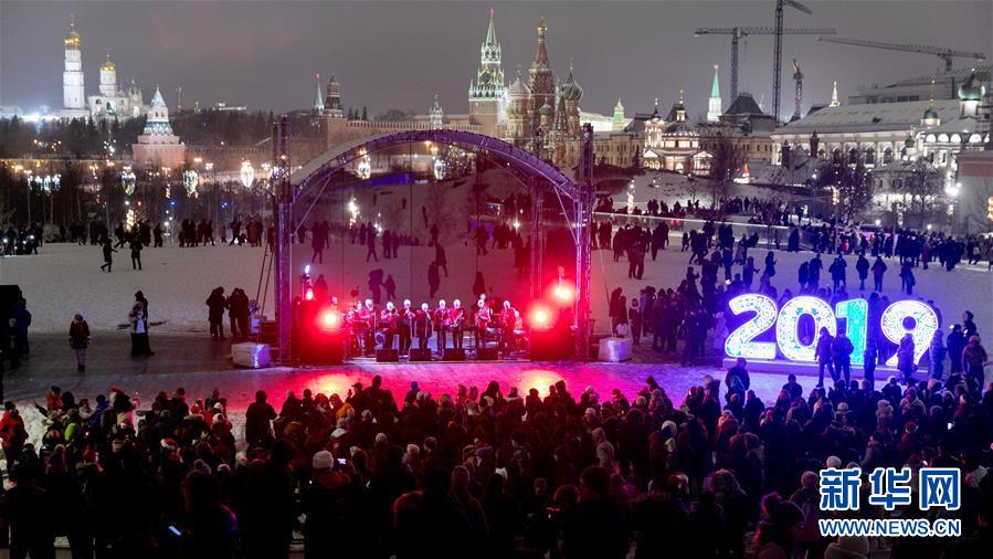 1月1日,在俄羅斯首都莫斯科,人們參加迎新年活動。 新華社記者白雪騏攝