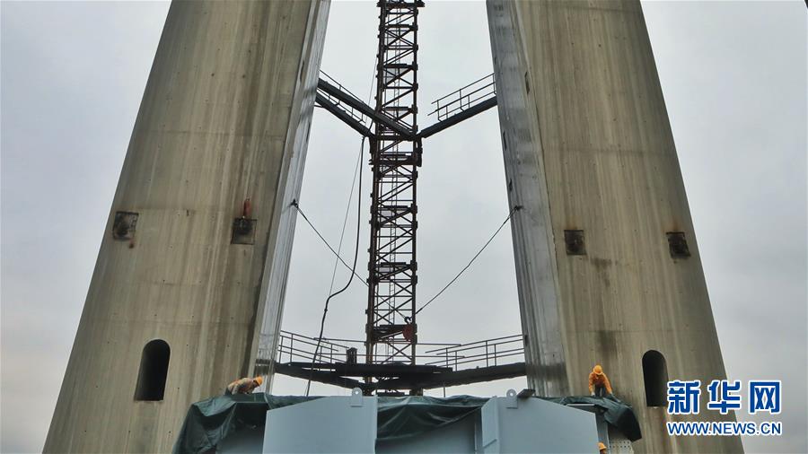 1月7日,建設者在世界第一高混凝土橋塔上建設平塘特大橋。 新華社記者歐東衢攝