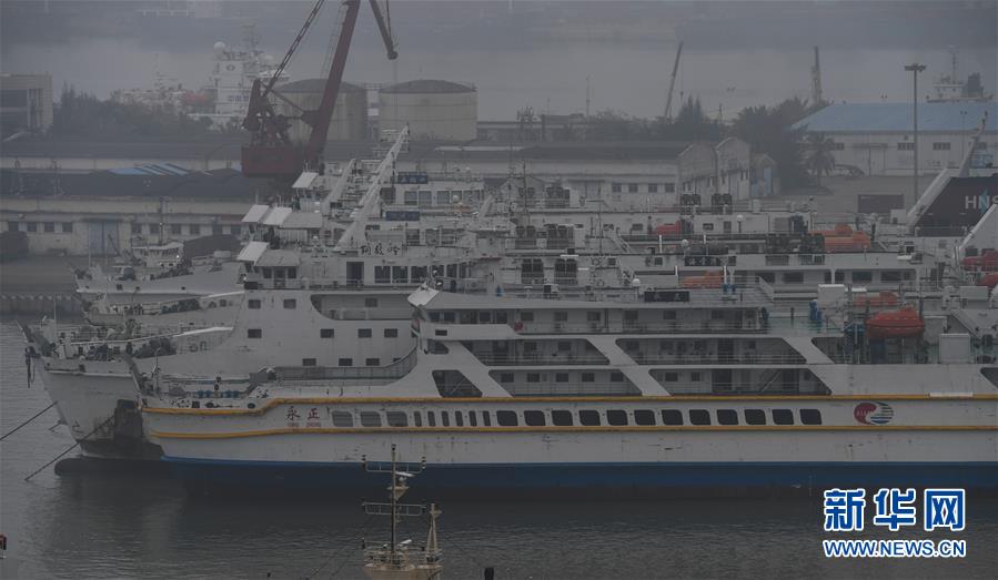 1月13日拍攝的停靠在海口秀英港的客滾船。