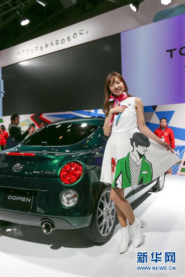 1月13日,在日本千葉東京汽車沙龍現(xiàn)場(chǎng),模特展示參展車輛。 新華社記者 馬曹冉 攝