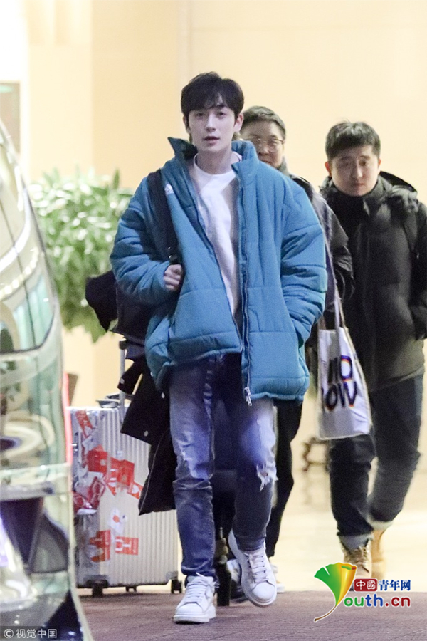 1月15日,北京,朱一龍現(xiàn)身機(jī)場。他穿綠色棉襖一路插兜保暖,搭配破洞褲潮范兒十足長腿搶鏡,打扮簡單毫無男神包袱,看鏡頭還一臉呆萌,但氣質(zhì)仍然出眾。