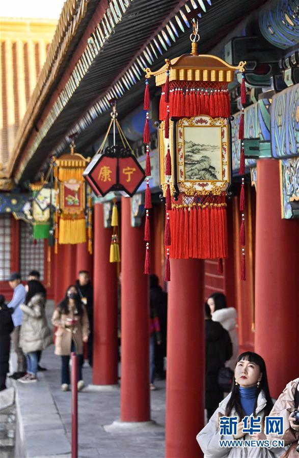 1月25日,游人在故宮內(nèi)參觀游覽。 春節(jié)將至,北京故宮博物院內(nèi)張燈結彩,到處懸掛著宮燈、萬壽燈、年畫、門神、福字等古代宮廷節(jié)日裝飾品,讓來自國內(nèi)外的游人感受到濃濃的年味。 新華社記者 李欣攝