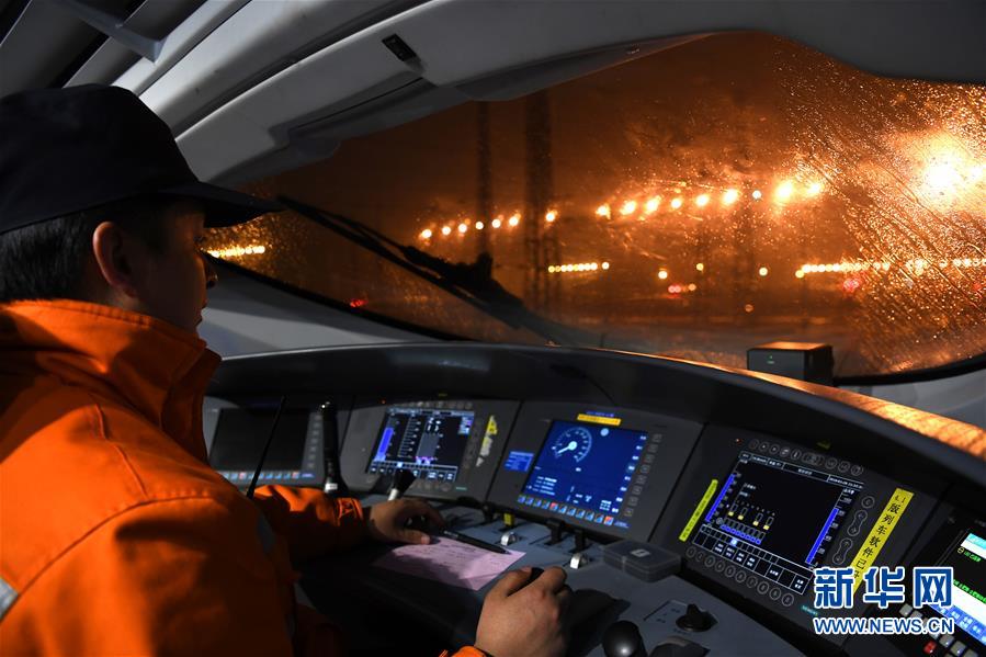1月29日,王瑞在動車上進(jìn)行調(diào)車作業(yè)。新華社記者劉軍喜攝