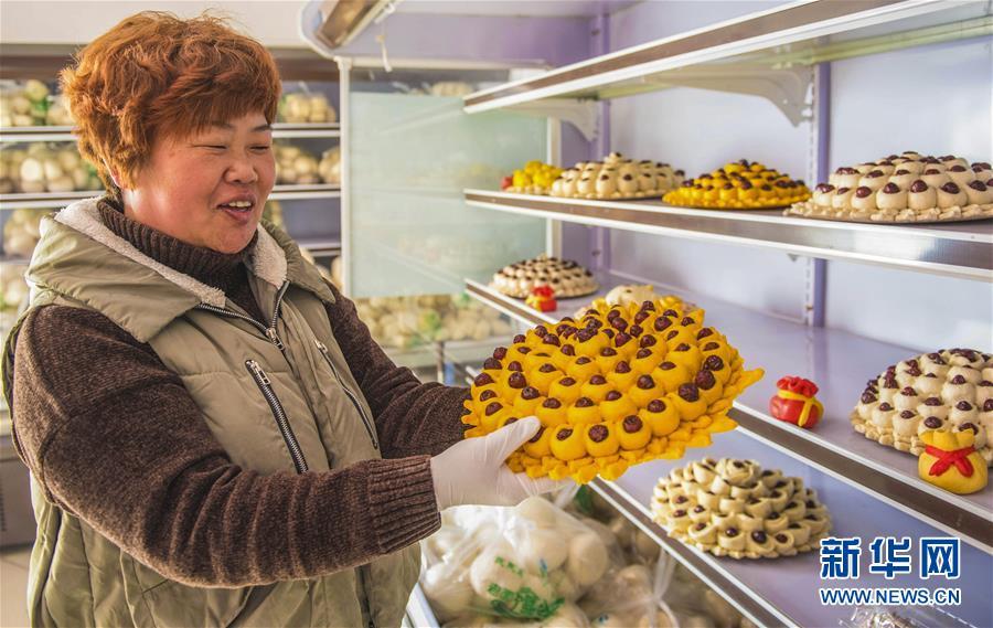 1月25日,在河北棗強(qiáng)一家食品公司的門市部,顧客在挑選花糕。 春節(jié)臨近,河北省棗強(qiáng)縣面食加工廠的面點(diǎn)師傅們忙著趕制花糕、花饃等傳統(tǒng)面食,以供應(yīng)節(jié)日市場(chǎng)。當(dāng)?shù)赜羞^(guò)年蒸花糕、做花饃的習(xí)俗,寓意步步登高,生活一年比一年好。 新華社記者 李曉果攝