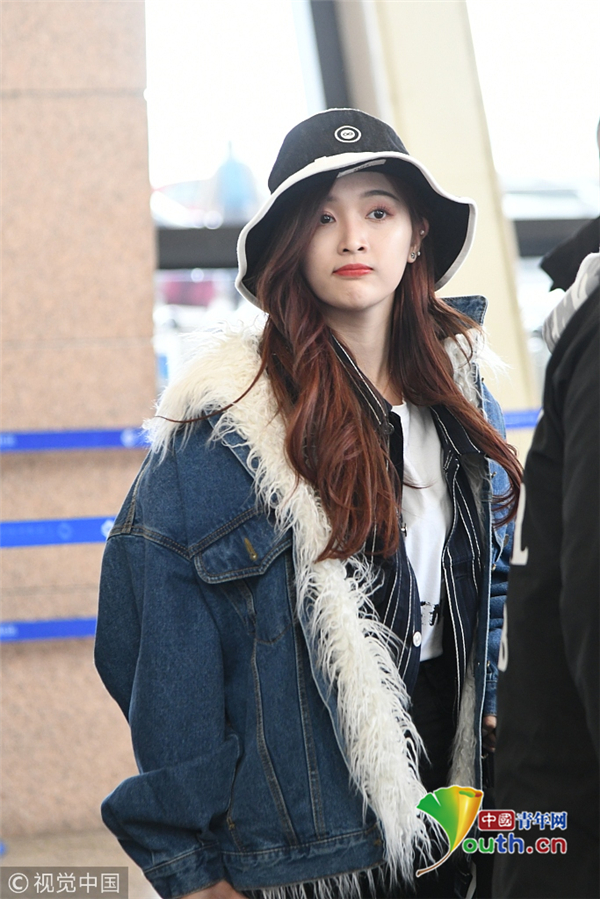 2月2日,上海,吳宣儀頭戴帽子身穿一襲牛仔服現(xiàn)身機(jī)場 。她自提大包回家過年 ,獲粉絲拜年祝福 ,吐舌狂賣萌。