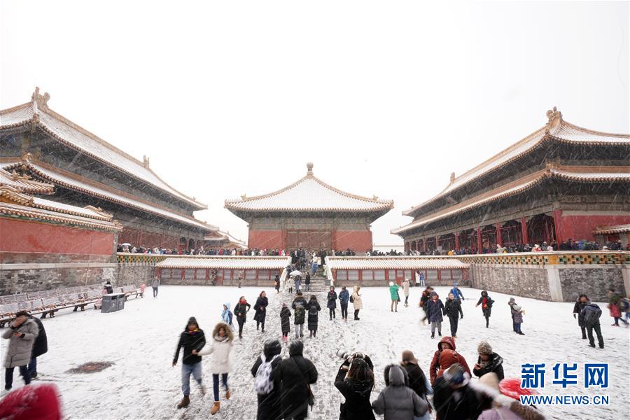 2月14日,游客在雪中游覽北京故宮。 當(dāng)日,北京降雪,大批游人來到故宮游覽賞雪。 新華社記者 鞠煥宗 攝