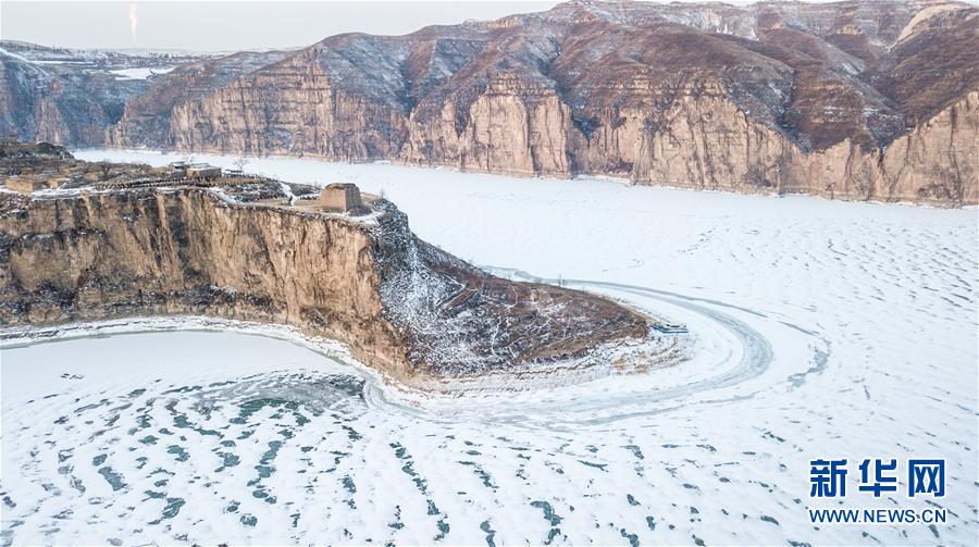 這是2月17日無人機拍攝的老牛灣雪景。黃河老牛灣位于山西省和內蒙古自治區(qū)交界處。