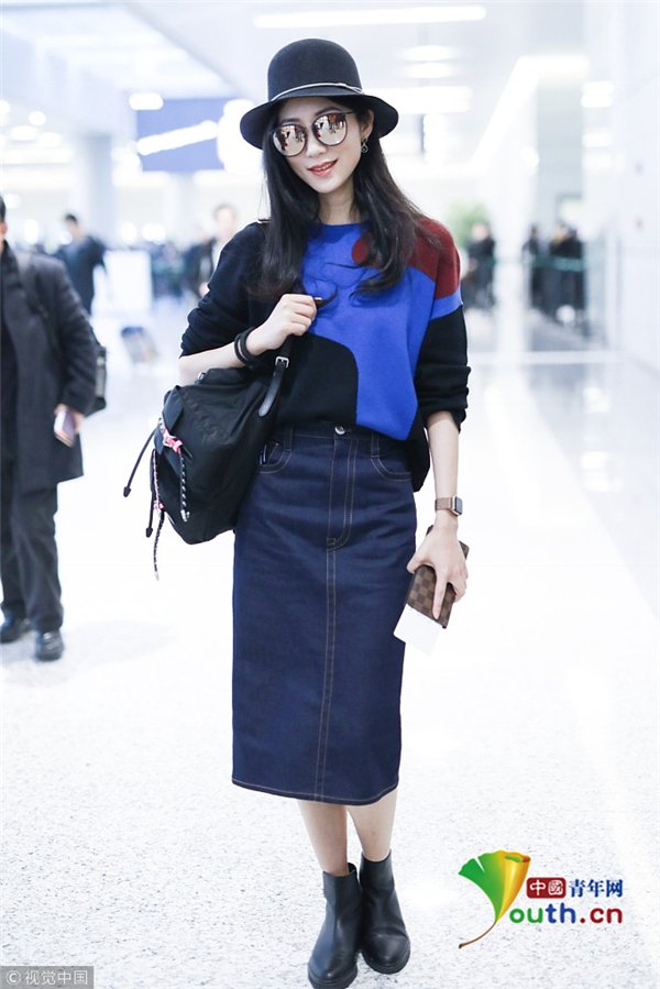 3月4日,上海,韓雪現(xiàn)身機(jī)場(chǎng)。她戴著圓帽和鐳射墨鏡,身穿拼色毛衣,盡顯優(yōu)雅名媛范。
