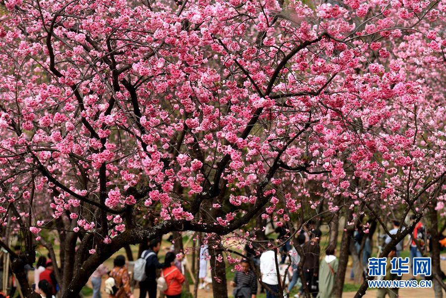 游人在昆明圓通山公園觀賞盛開的櫻花(3月16日攝)。近日,云南省昆明市迎來櫻花盛開的時(shí)節(jié)。昆明圓通山公園的數(shù)千株櫻花燦爛綻放,吸引了市民和游客前來觀花賞景。新華社記者藺以光攝