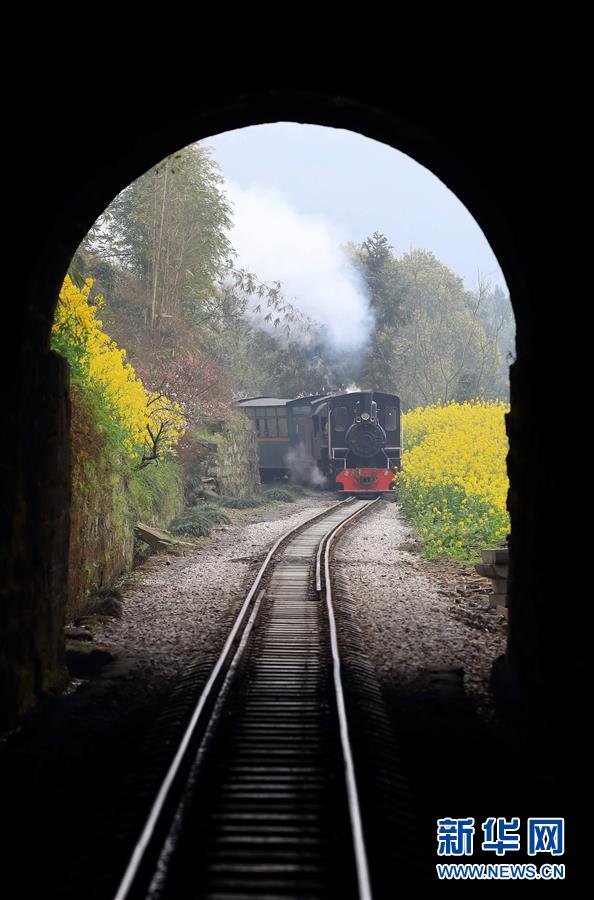 初春時節(jié),在花海中穿行的嘉陽小火車迎來了每年的旅游旺季,眾多游客慕名前來乘坐。