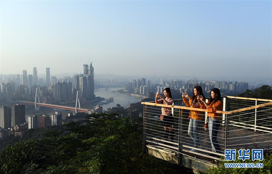 游客在位于重慶市南岸區(qū)的一棵樹觀景臺欣賞城市風光(2018年10月10日攝)。 千里為重,廣大為慶。城在山水間、山水在城中,重慶頗具特色的立體城市景觀是城市靚麗的名片。 新華社記者 王全超 攝