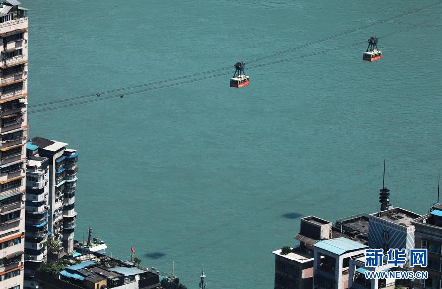 這是4月7日拍攝的重慶長江索道。 千里為重,廣大為慶。城在山水間、山水在城中,重慶頗具特色的立體城市景觀是城市靚麗的名片。 新華社記者 王全超 攝