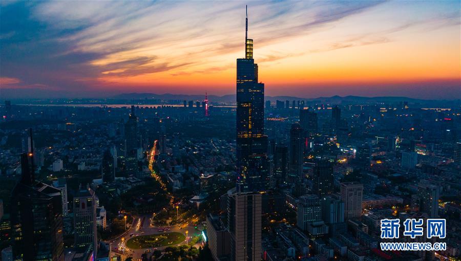 這是4月18日無(wú)人機(jī)拍攝的南京城市夜景。 新華社記者 李響 攝