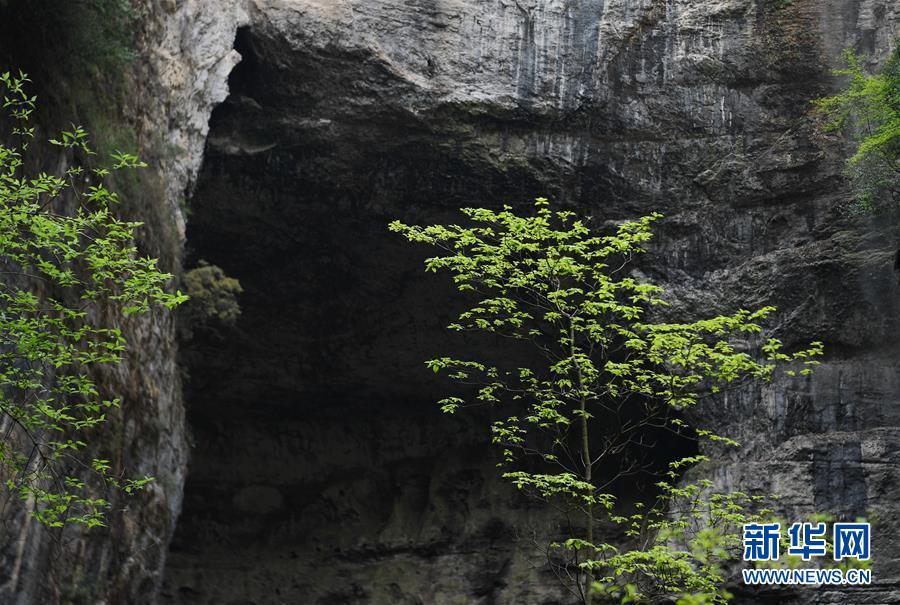 地洞河天坑的巖洞(4月22日攝)。位于陜西省漢中市寧強縣的地洞河天坑,是禪家?guī)r天坑群中規(guī)模最大的一處天坑,坑內分布有石鐘乳、石筍,具有極高的地質研究價值。 新華社記者 張博文 攝