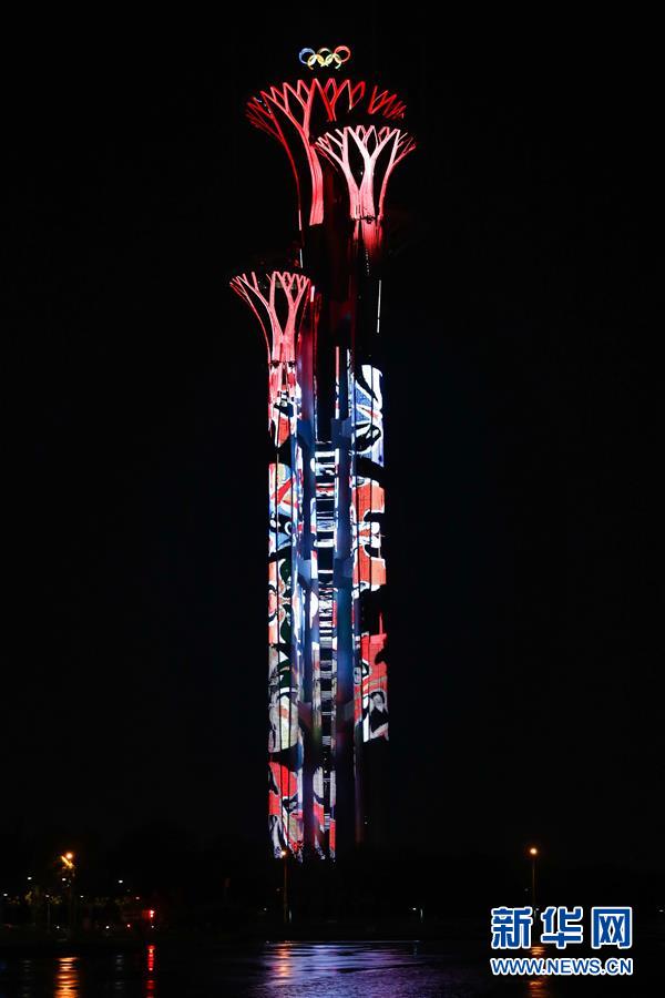 4月26日,北京中軸線上演“空間光影秀”。 新華社記者 沈伯韓 攝