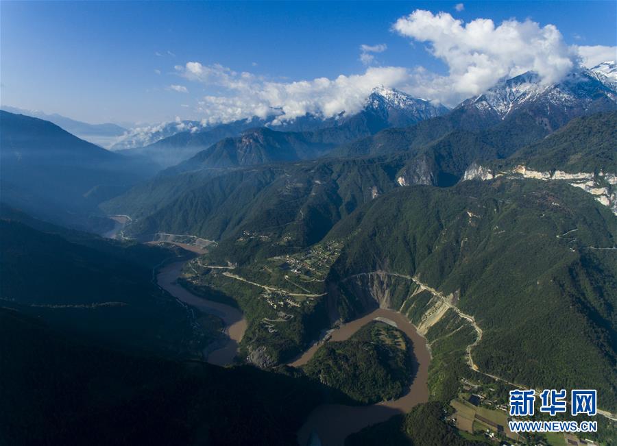 這是4月27日在云南省貢山獨龍族怒族自治縣丙中洛鎮(zhèn)拍攝的“怒江第一灣”(無人機拍攝)。 怒江自青藏高原一路奔騰向南流至云南省貢山獨龍族怒族自治縣丙中洛鎮(zhèn),高黎貢山與碧羅雪山夾江而立,江水順山勢急轉(zhuǎn)形成了一個氣勢磅礴的半圓形大灣,被稱為“怒江第一灣”。 新華社記者 江文耀 攝