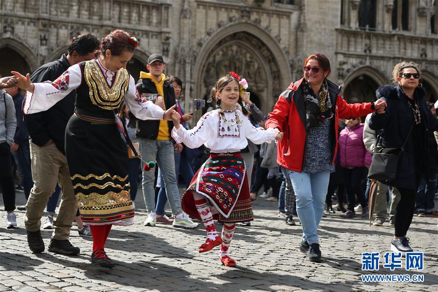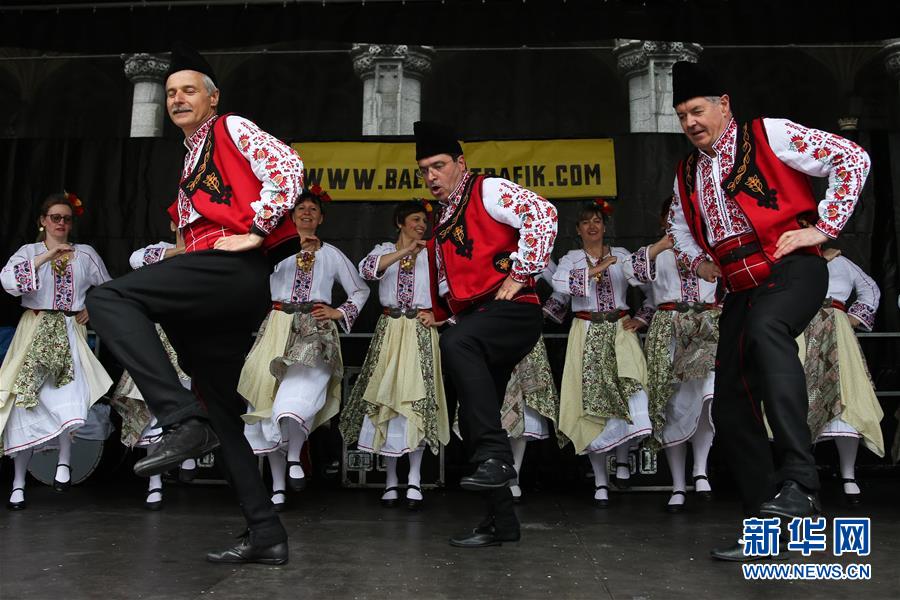 4月28日,在比利時(shí)布魯塞爾大廣場(chǎng),演員表演保加利亞的民族舞蹈。 當(dāng)日,來(lái)自歐洲多個(gè)國(guó)家的表演者在比利時(shí)布魯塞爾大廣場(chǎng)載歌載舞,慶祝為期五天的2019年巴爾干文化藝術(shù)節(jié)圓滿落幕。該文化藝術(shù)節(jié)旨在用音樂(lè)、舞蹈、文學(xué)、街頭藝術(shù)等方式向公眾展現(xiàn)東南歐巴爾干半島地區(qū)的民族文化風(fēng)情。 新華社記者鄭煥松攝