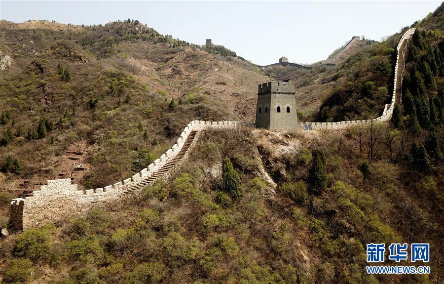 這是4月19日拍攝的黃崖關(guān)長城景區(qū)(無人機拍攝)。新華社記者 李然 攝