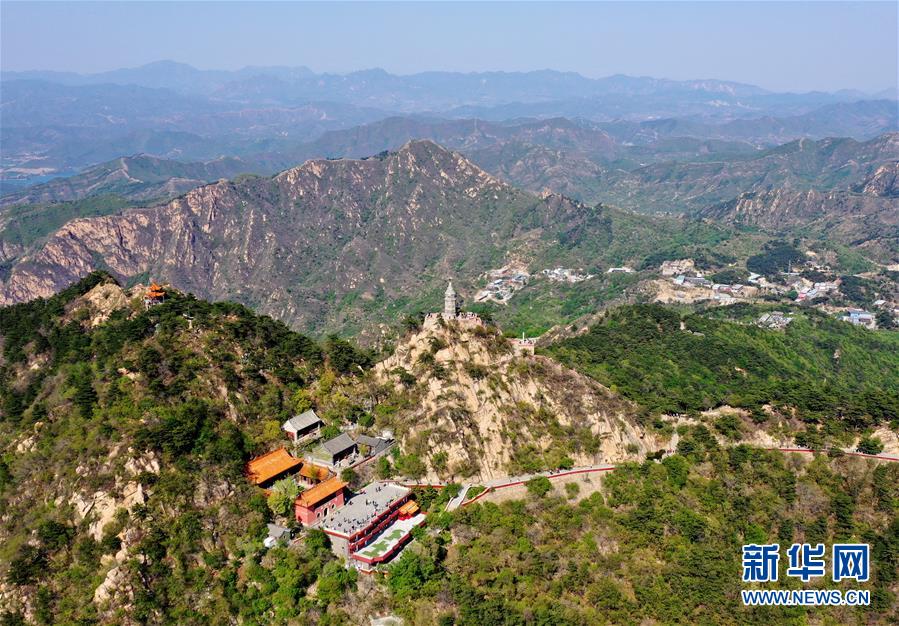 這是5月2日拍攝的盤山風(fēng)景名勝區(qū)正門景觀(無人機拍攝)。新華社記者 岳月偉 攝