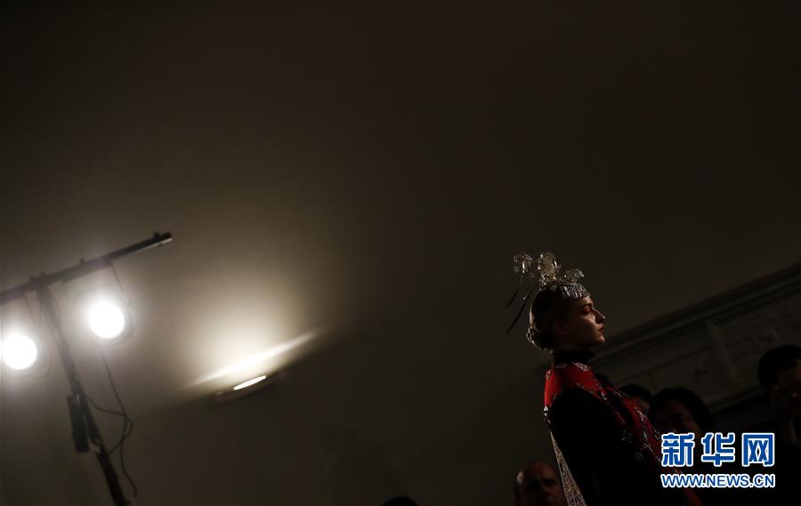5月8日,一名模特在英國倫敦走秀。 由浙江省文化和旅游廳舉辦的浙江傳統(tǒng)工藝創(chuàng)新展8日在倫敦開幕。為期4天的展覽是第五屆倫敦手工藝周的重要活動之一。 新華社記者 韓巖 攝