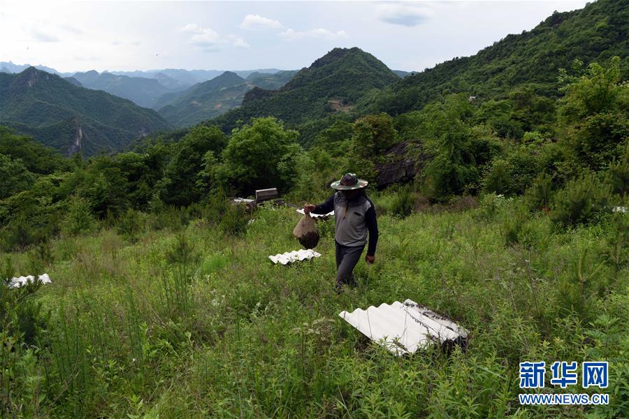 5月10日,在甘肅省隴南市徽縣大河店鎮(zhèn)硬灣村,蜂農(nóng)周仲頤在收蜂。 甘肅省隴南市徽縣大河店鎮(zhèn)硬灣村位于秦巴山區(qū)深處,2017年,在當?shù)卣姆龀窒?,龍崖老巢蜜養(yǎng)殖農(nóng)民專業(yè)合作社成立,蜂農(nóng)們將傳統(tǒng)養(yǎng)蜂技藝和現(xiàn)代加工方式相結合,并通過電商等渠道打開銷路,有效帶動了當?shù)刎毨Т迕衩撠氈赂?。目前整個合作社共有蜂箱2000余個,每箱每年可帶來三四千元的收入。 新華社記者 馬寧 攝