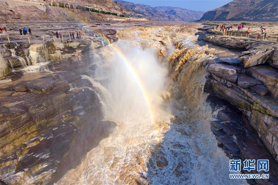 這是2018年3月22日無人機拍攝的山西吉縣黃河壺口瀑布。新華社記者 曹陽 攝