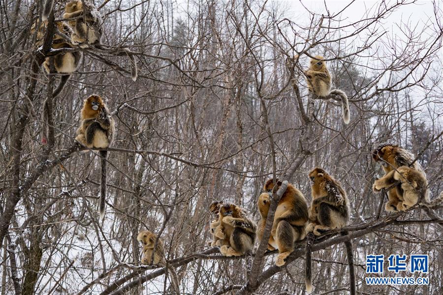 在神農(nóng)架?chē)?guó)家公園大龍?zhí)杜臄z的金絲猴(2018年1月25日攝)。 新華社記者 杜華舉 攝