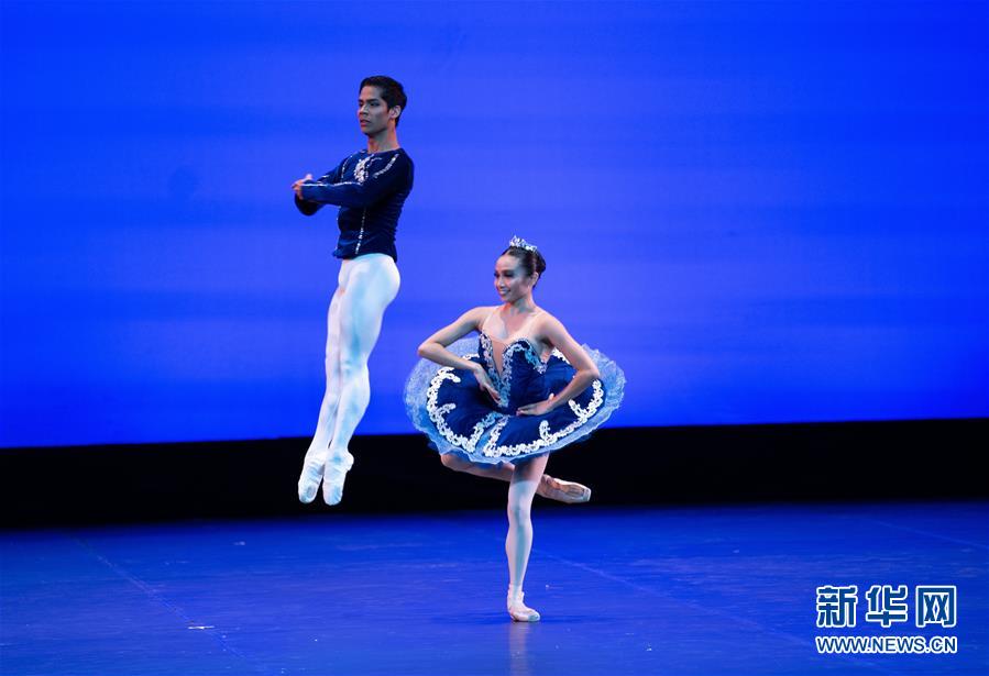 5月14日,在北京天橋藝術中心,菲律賓芭蕾舞團演員杰邁瑪·雷耶斯(右)、維克托·馬果表演古典大雙人舞。 當日,作為亞洲文化展演活動的開幕演出,中央芭蕾舞團攜手韓國、菲律賓等國家的藝術家共聚一堂,演繹了一場精彩的《亞洲芭蕾之夜》。 新華社記者 金良快 攝