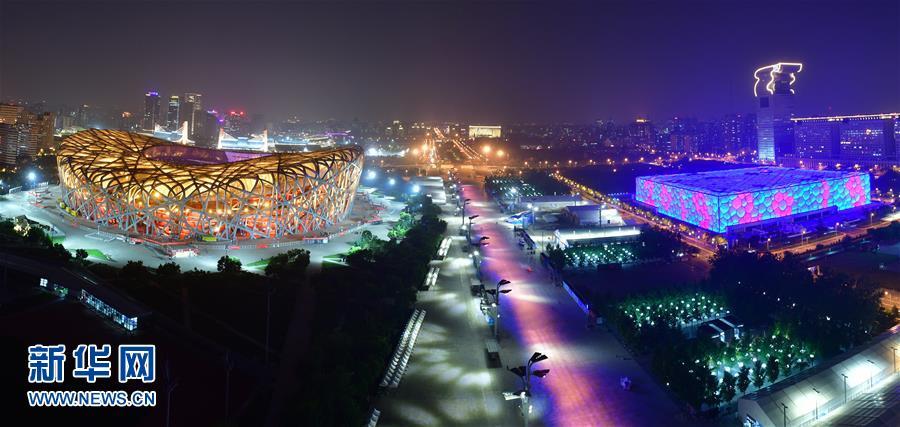 5月14日,“鳥巢”和“水立方”燈光璀璨。 當晚,一場“空間光影秀”在北京上演。 新華社記者 李賀 攝