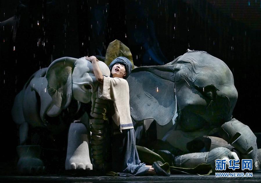 5月15日在上海美琪大戲院拍攝的新版大型人偶舞臺(tái)劇《最后一頭戰(zhàn)象》劇照。 當(dāng)日,作為第12屆中國藝術(shù)節(jié)的參演劇目,大型人偶舞臺(tái)劇《最后一頭戰(zhàn)象》在經(jīng)過4次硬件技術(shù)升級(jí)和故事修改后亮相上海美琪大戲院。 新華社記者 任瓏 攝