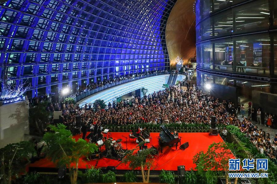 5月19日凌晨,觀眾在國家大劇院公共空間欣賞小野麗莎“午夜玫瑰”爵士樂專場音樂會。 5月18日晚,作為亞洲文化展演活動的演出之一,著名爵士歌手小野麗莎攜樂團首次登臺國家大劇院,亮相“午夜玫瑰”爵士樂專場音樂會。 新華社記者 張玉薇 攝