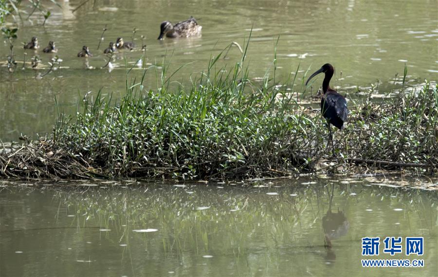 5月21日,一群野鴨從棲息在漢江濕地公園里的一只彩鹮身邊游過(guò)。 近日,國(guó)家二級(jí)保護(hù)動(dòng)物彩鹮現(xiàn)身陜西省漢中市漢江濕地公園濂水河與漢江交匯處。 據(jù)陜西師范大學(xué)生命科學(xué)院教授于曉平介紹,彩鹮在世界上的分布比朱鹮還要少,這幾年在云南發(fā)現(xiàn)得多一些,這3只彩鹮現(xiàn)身漢江濂水河畔,是陜西首次發(fā)現(xiàn)彩鹮蹤跡。 據(jù)了解,彩鹮是國(guó)家二級(jí)保護(hù)動(dòng)物,屬鵜形目鹮科,體羽大部為青銅栗色,是珍稀鳥(niǎo)類朱鹮的“近親”,體型比朱鹮略小。 新華社記者陶明攝