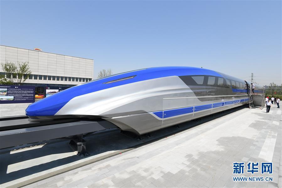 5月23日在青島拍攝的我國時速600公里高速磁浮試驗樣車。 5月23日10時50分,我國時速600公里高速磁浮試驗樣車在青島下線。這標(biāo)志著我國在高速磁浮技術(shù)領(lǐng)域?qū)崿F(xiàn)重大突破。 新華社記者李紫恒攝