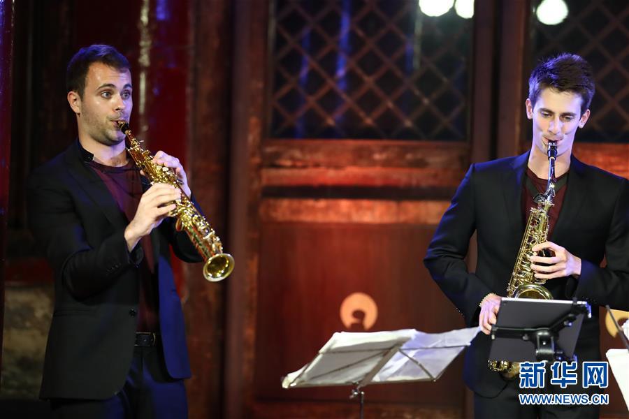 5月26日,凱比亞特樂隊(duì)成員在音樂會(huì)上表演。 當(dāng)日,作為第十九屆“相約北京”藝術(shù)節(jié)系列演出之一,西班牙凱比亞特樂隊(duì)薩克斯四重奏音樂會(huì)在北京Temple東景緣上演。 新華社記者 張玉薇 攝