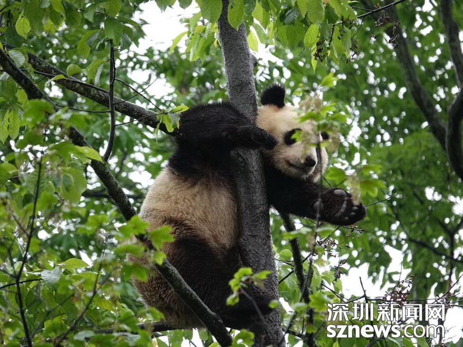 5月26日在中國(guó)大熊貓保護(hù)研究中心臥龍神樹坪基地的“熊貓幼兒園”內(nèi)拍攝的大熊貓。