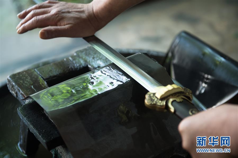 5月21日,“古越劍鋪”磨劍師吳長友在磨制寶劍。吳長友是鄭國榮在國營劍廠的老同事,跟隨鄭鑄劍20余年。 新華社記者 翁忻旸 攝