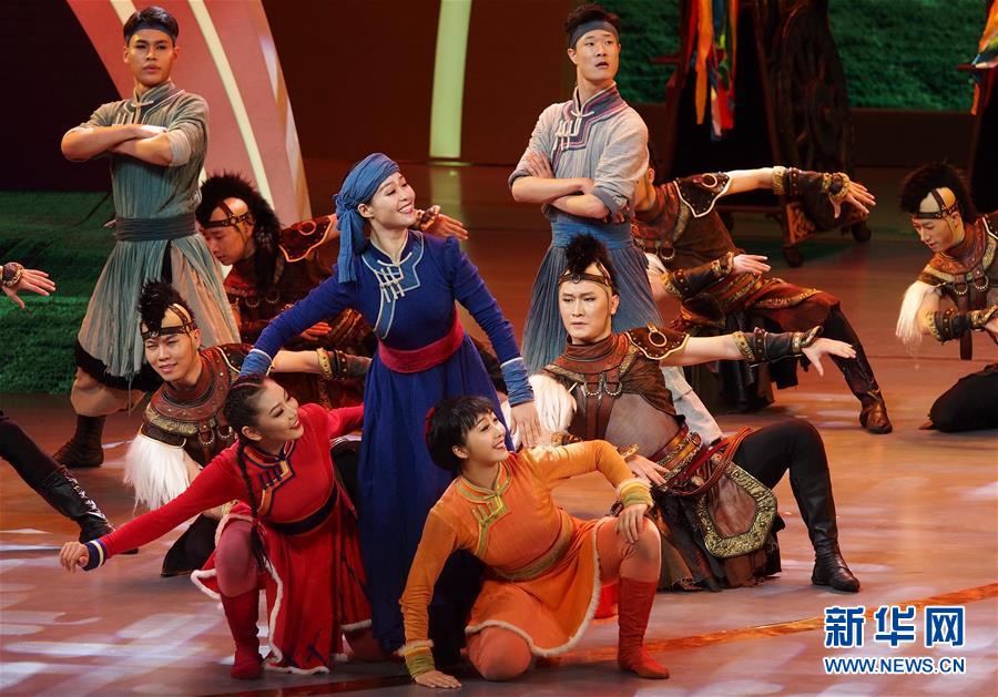 6月2日,內(nèi)蒙古藝術(shù)學(xué)院演員在第十二屆中國藝術(shù)節(jié)閉幕式上匯報(bào)演出獲得文華大獎(jiǎng)的舞劇《草原英雄小姐妹》選段。  新華社記者 任瓏 攝