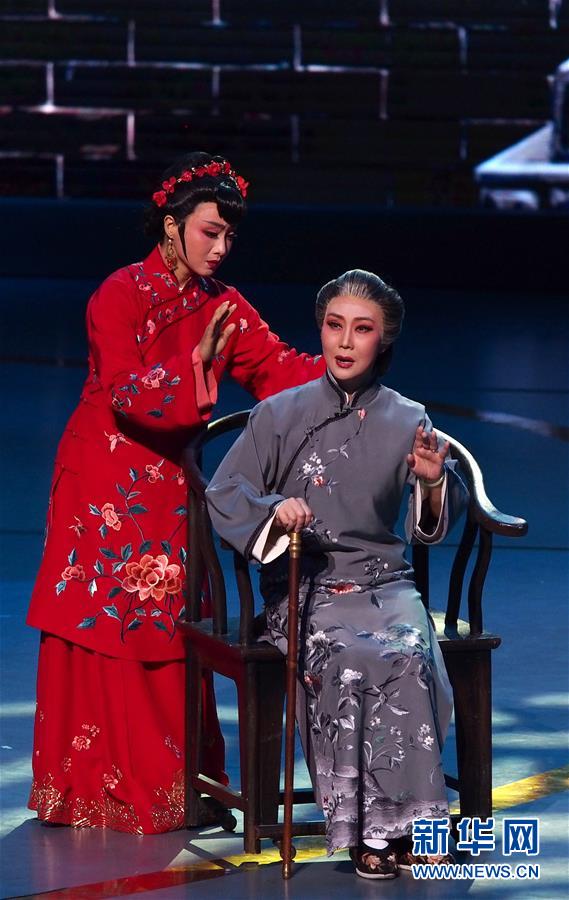 6月2日,蘇州市蘇劇傳習(xí)保護(hù)中心演員在第十二屆中國藝術(shù)節(jié)閉幕式上匯報(bào)演出獲得文華大獎(jiǎng)的蘇劇《國鼎魂》選段。 新華社記者 任瓏 攝
