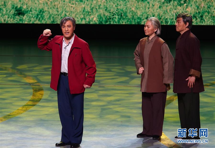 6月2日,獲得文華表演獎(jiǎng)的演員梁偉平在第十二屆中國藝術(shù)節(jié)閉幕式上匯報(bào)演出淮劇《武訓(xùn)先生》選段。 新華社記者 任瓏 攝