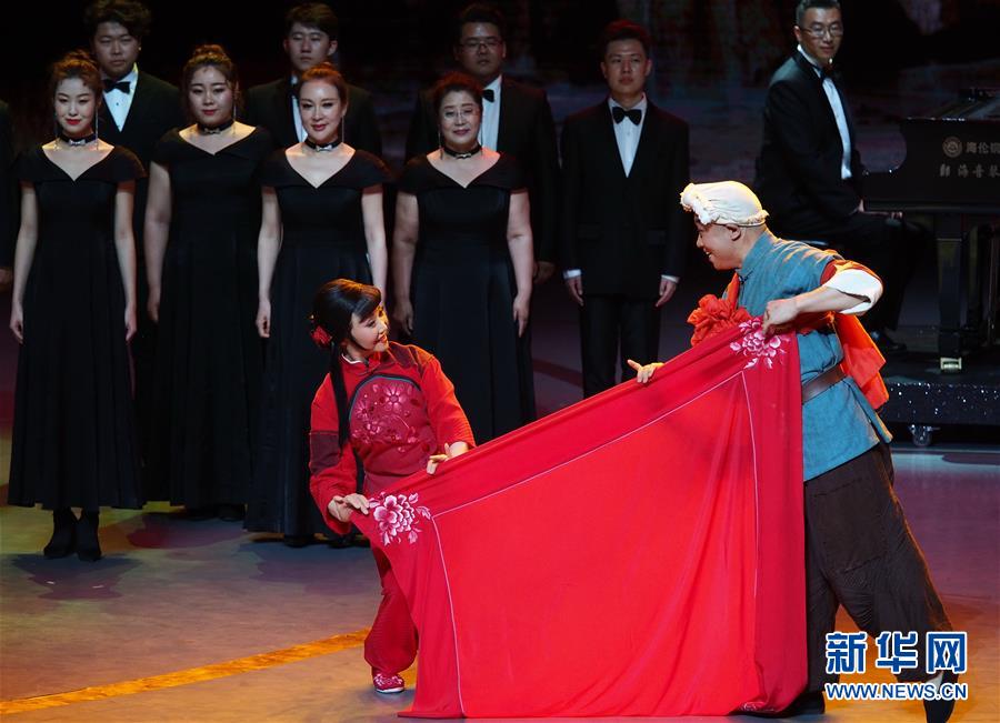 6月2日,演員在第十二屆中國(guó)藝術(shù)節(jié)閉幕式上匯報(bào)演出獲得文華大獎(jiǎng)的秦腔《王貴與李香香》選段。 新華社記者 任瓏 攝