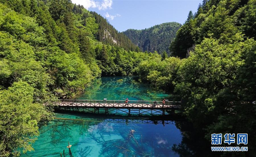 這是九寨溝景區(qū)的五花海景點(6月5日無人機拍攝)。新華社記者薛玉斌攝
