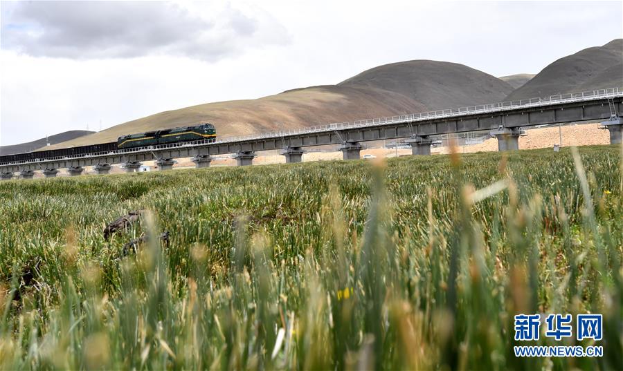 列車行駛在青藏鐵路上(6月10日攝)。新華社記者覺果攝