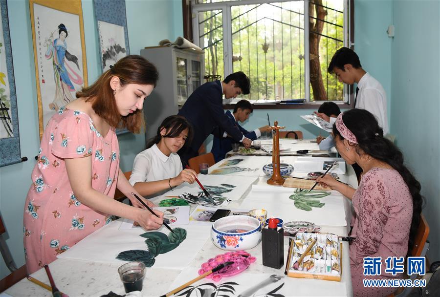 6月10日,在塔吉克斯坦首都杜尚別,學(xué)生在塔吉克斯坦民族大學(xué)孔子學(xué)院畫畫。 塔吉克斯坦共和國(guó),簡(jiǎn)稱塔吉克斯坦,是位于中亞東南部的內(nèi)陸國(guó)家。塔吉克斯坦是多民族國(guó)家,全國(guó)共有86個(gè)民族,人口約910萬。 新華社記者沙達(dá)提攝