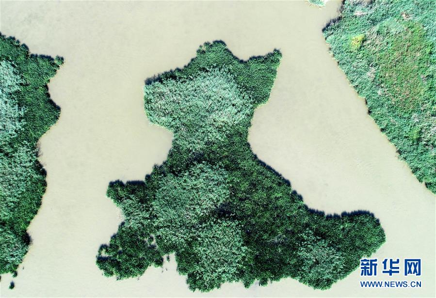 這是天津市寧河區(qū)七里海濕地內(nèi)蘆葦和水面形成的圖案(6月22日無人機(jī)拍攝)。