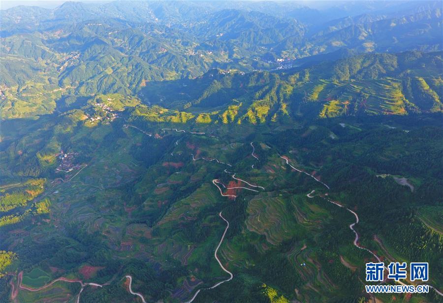 這是融水苗族自治縣桿洞鄉(xiāng)百秀村的村屯公路(6月19日無人機拍攝)。新華社記者 黃孝邦 攝