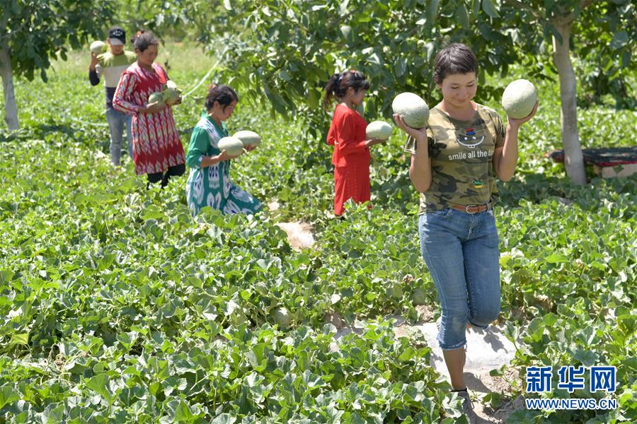 6月23日,新疆喀什地區(qū)巴楚縣的瓜農(nóng)搬運剛采摘的留香瓜。新華社記者 丁磊 攝