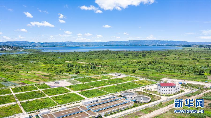 6月20日無人機(jī)拍攝的草海國家級自然保護(hù)區(qū)萬噸生活污水處理廠。 新華社記者 陶亮 攝